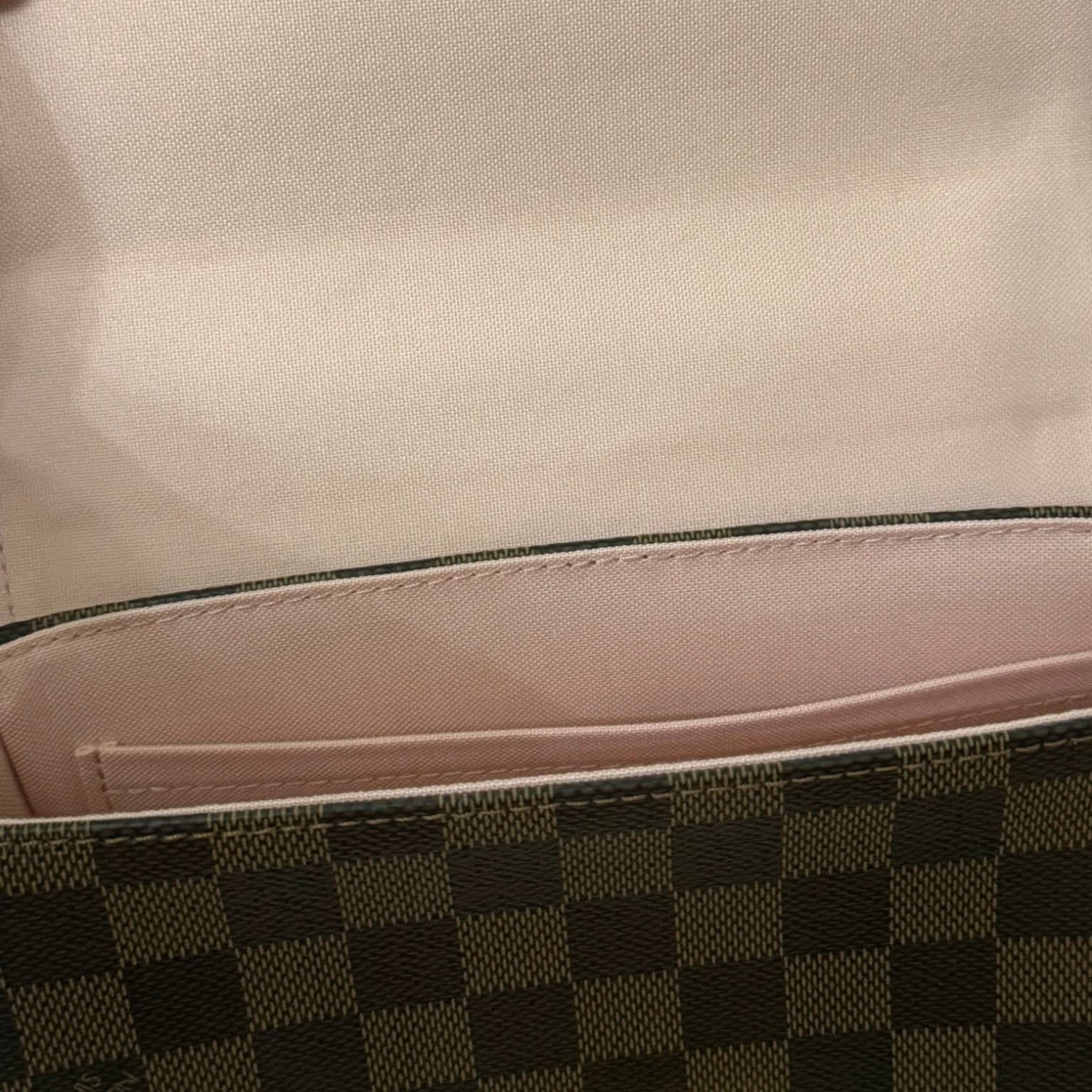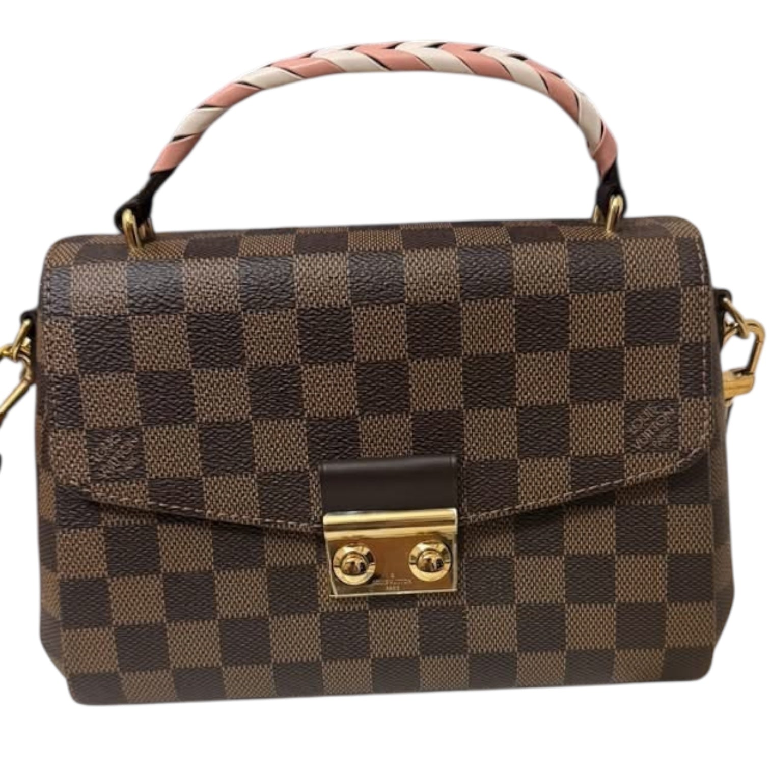 Now discontinued - this is the braided handle Croisette in Damier Ebene with the original DE Croisette Strap (brown leather, not braided). It also comes with the dust bag, Entrupy certificate, tags and light pink felt organizer. The inside is a gorgeous light pink interior.
