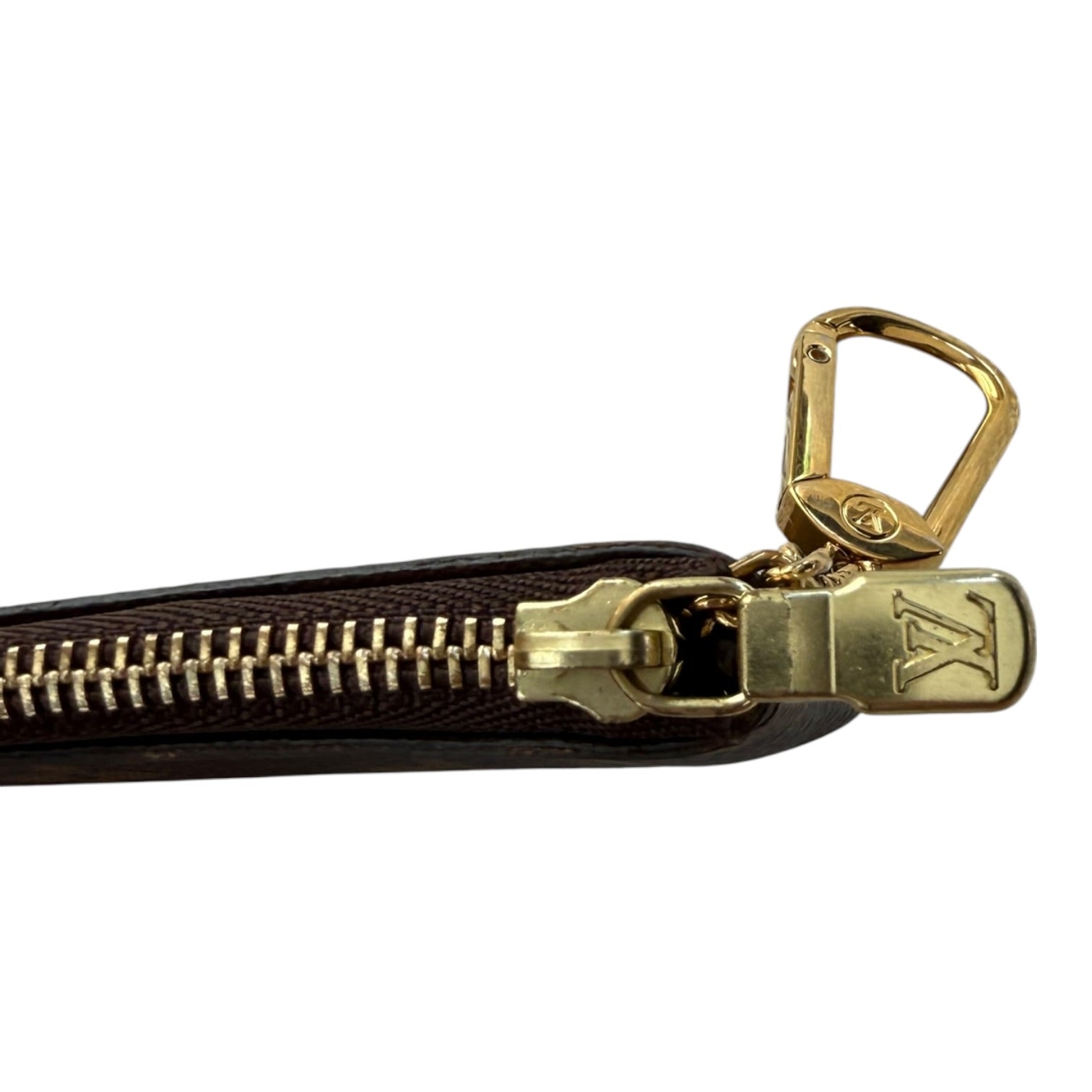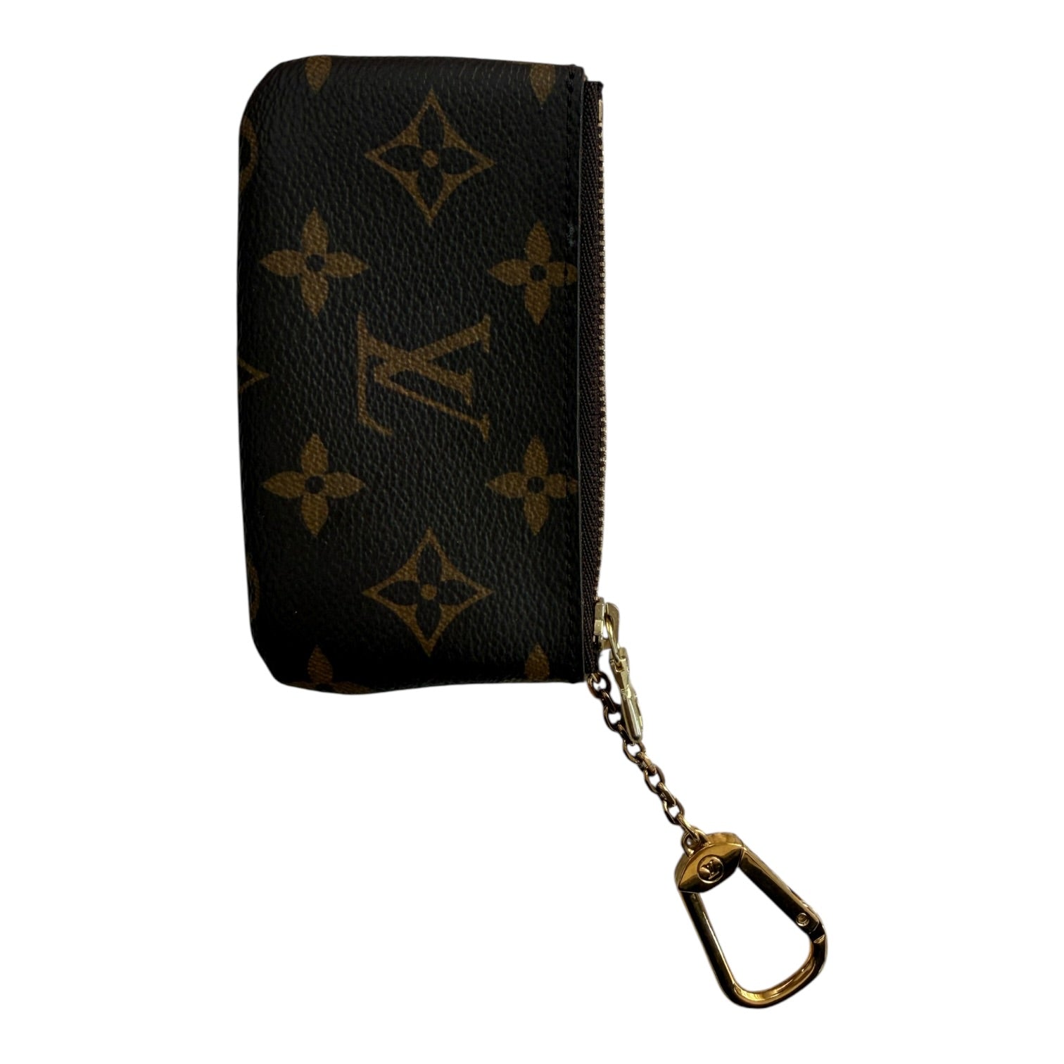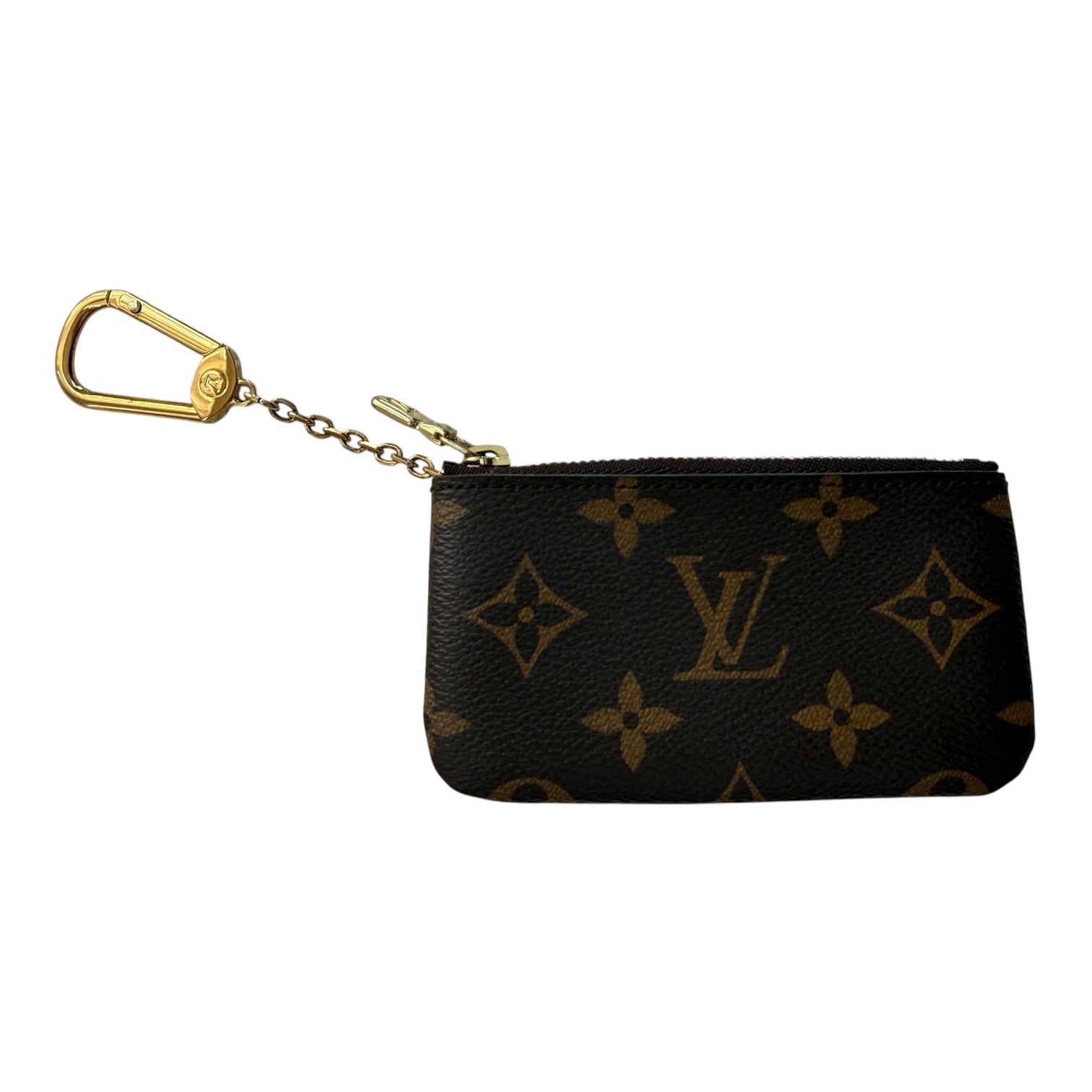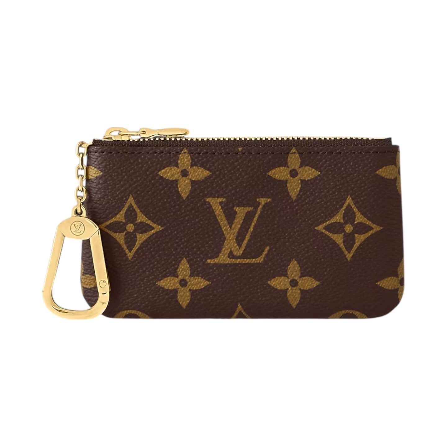 The Key Pouch in iconic Monogram canvas is a playful yet practical accessory that can carry coins, cards, folded bills and other small items, in addition to keys. Secured with an LV-engraved zip, it can be hooked onto the D-ring inside most Louis Vuitton bags, or used as a bag or belt charm.